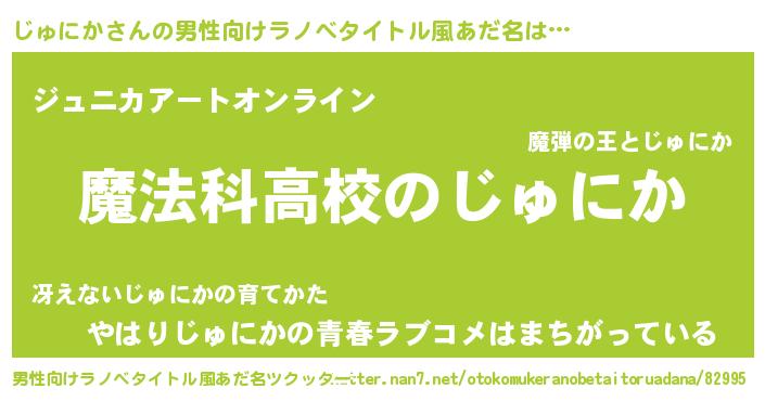 | 女子向けラノベタイトル風あだ名 | 『じゅにかなんてお断りですっ。』 |