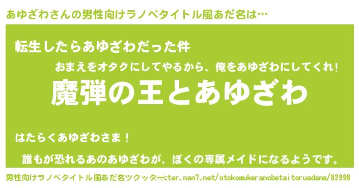 | 意味不明あだ名 | 『住所不定無職あゆざわ(93歳)』 |