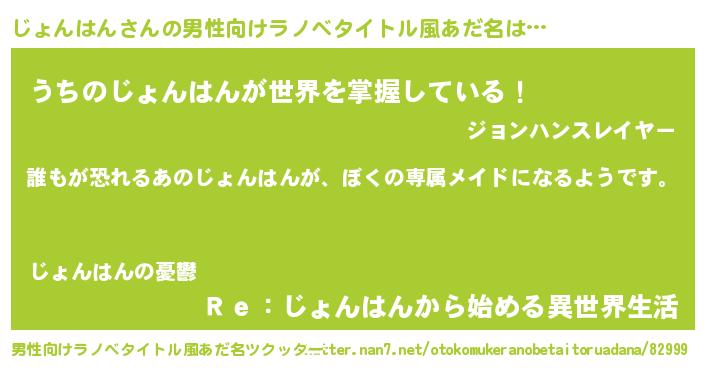 じょんはんさんの男性向けラノベタイトル風あだ名をツクッター!