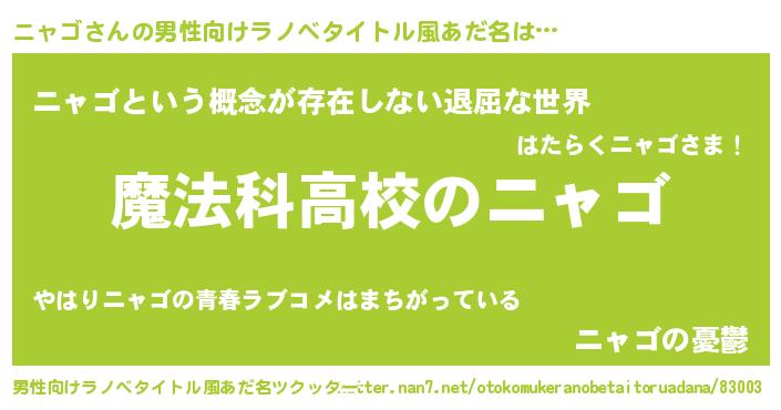 | 女子向けラノベタイトル風あだ名 | 『ニャゴなんてお断りですっ。』 |