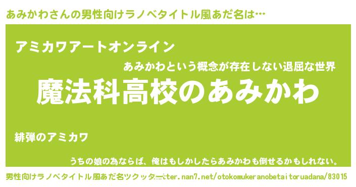 | 意味不明あだ名 | 『自称あみかわ』『ペロリンあみかわ』 |
