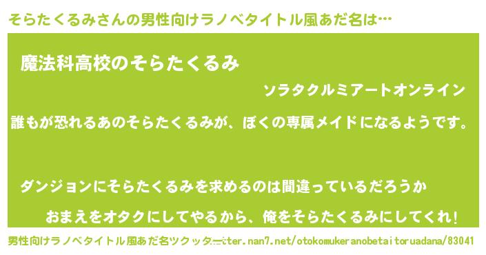 | ヒーロー風カッコイイあだ名 | 『ネオソラタクルミ』『魔戒騎士ソラ』 |