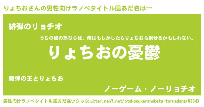 | 女子向けラノベタイトル風あだ名 | 『りょちお姫と円卓の騎士』 |