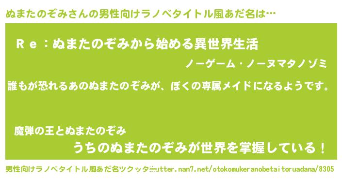 | 意味不明あだ名 | 『永久保存ぬまたのぞみ』 |