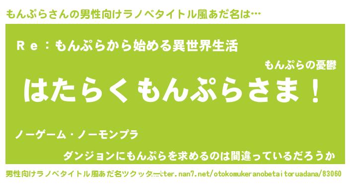 | ヒーロー風カッコイイあだ名 | 『サイバー戦士モンプラ』『魔戒騎士モン』 |