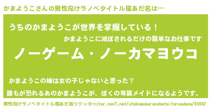 | ヒーロー風カッコイイあだ名 | 『慈愛の使者かまようこ』『幻影騎士カマ』 |
