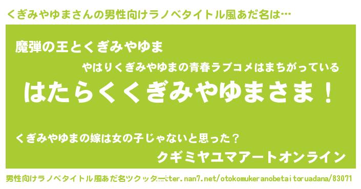 | ヒーロー風カッコイイあだ名 | 『仮面クギダー』『スーパークギミヤユマ』 |