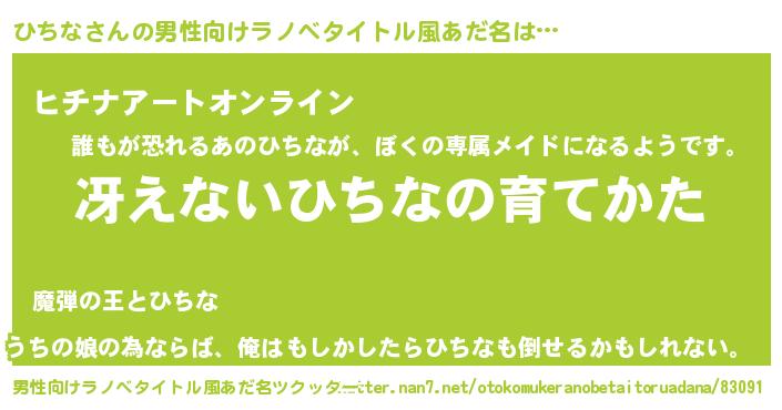 | ヒーロー風カッコイイあだ名 | 『スーパーヒチナ』『ウルトラひちなマン』 |