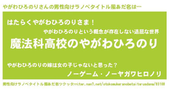 | 女子向けラノベタイトル風あだ名 | 『やがわひろのりなんてお断りですっ。』 |