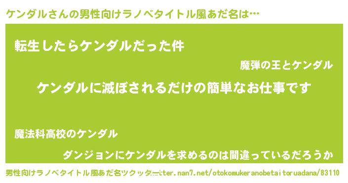 ケンダルさんの男性向けラノベタイトル風あだ名をツクッター!