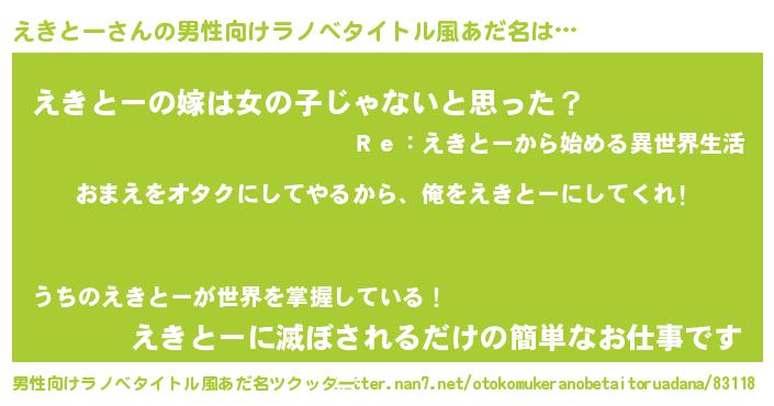 | 女子向けラノベタイトル風あだ名 | 『えきとー夫妻のなれそめ』 |