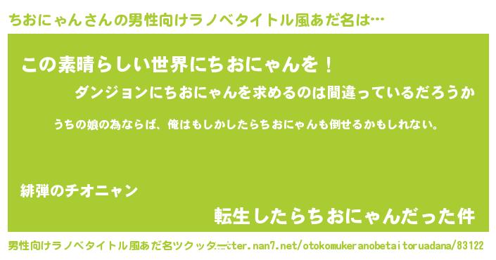 | 女子向けラノベタイトル風あだ名 | 『ちおにゃんの婚約者』 |