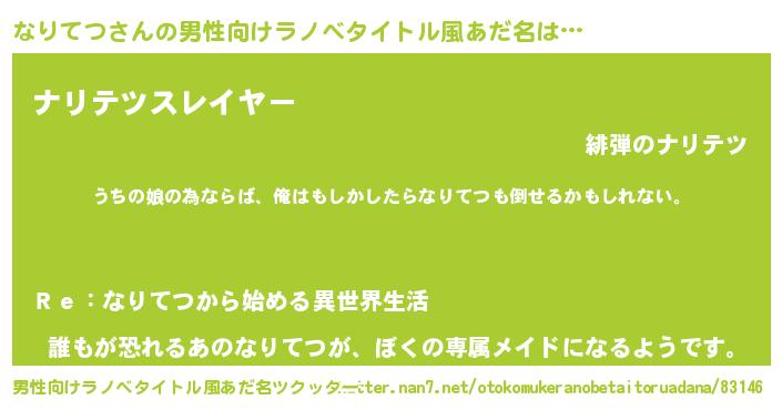 | 女子向けラノベタイトル風あだ名 | 『なりてつの婚約者』『闇のなりてつ』 |