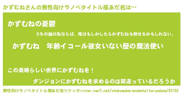 | 女子向けラノベタイトル風あだ名 | 『かずむねの玉の輿計画!』 |