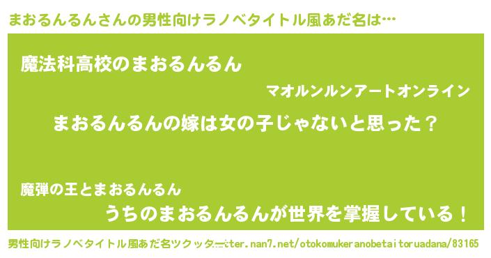 | 女子向けラノベタイトル風あだ名 | 『まおるんるんの卵を拾いまして』 |