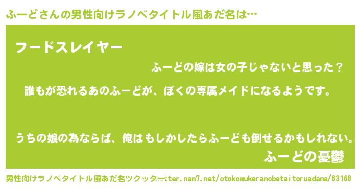| ヘコむあだ名 | 『ふーど(苦笑)』『ふーふぇ~』 |