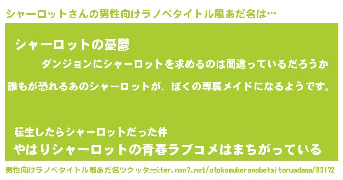 | 意味不明あだ名 | 『永久保存シャーロット』 |
