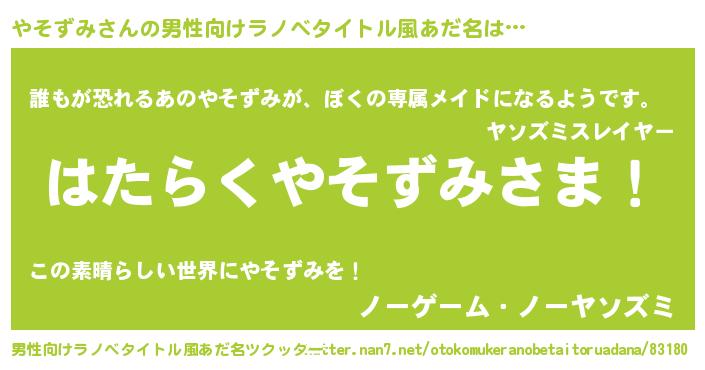 | 胡散臭い通販商品みたいなあだ名 | 『絶対に幸福をもたらす健康食品…その名も「やそずみ」』 |
