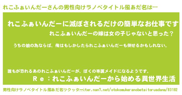 | 女子向けラノベタイトル風あだ名 | 『れこふぁいんだーの婚約者』 |