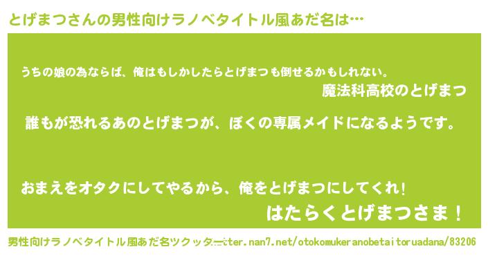 | 意味不明あだ名 | 『永久保存とげまつ』『自称とげまつ』 |
