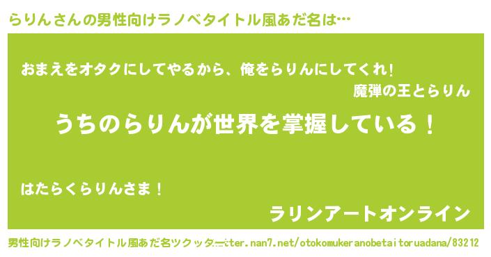 | 女子向けラノベタイトル風あだ名 | 『男装らりんの憂鬱な任務』 |