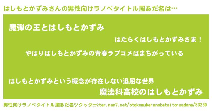 | 肩書あだ名 | 『はしもとかずみ総理大臣』 |