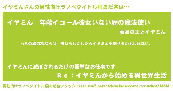 | 女子向けラノベタイトル風あだ名 | 『イヤミんの婚約者』『闇のイヤミん』 |