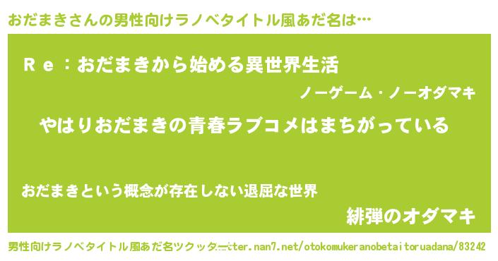 | 意味不明あだ名 | 『おだまきフォーエバー』『自称おだまき』 |