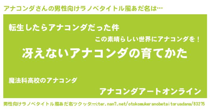 | 女子向けラノベタイトル風あだ名 | 『男装アナコンダの憂鬱な任務』 |