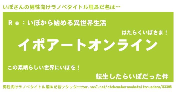 | 女子向けラノベタイトル風あだ名 | 『誰かこのいぽを説明してください! ~契約から始まるウェディング~』 |