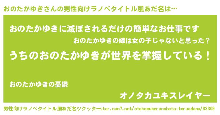 | 女子向けラノベタイトル風あだ名 | 『男装おのたかゆきの憂鬱な任務』 |