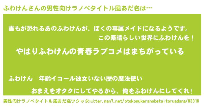 | 胡散臭い通販商品みたいなあだ名 | 『世界が平和になる高級そうな壺…その名も「ふわけん」』 |