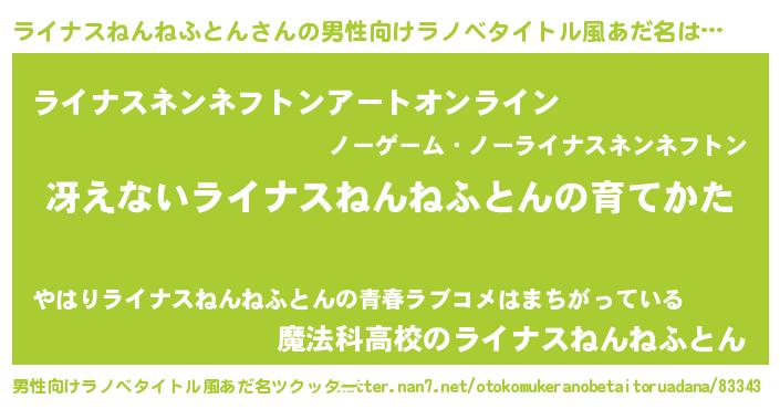 | 胡散臭い通販商品みたいなあだ名 | 『モテモテ間違いなし水晶球…その名も「ライナスねんねふとん」』 |