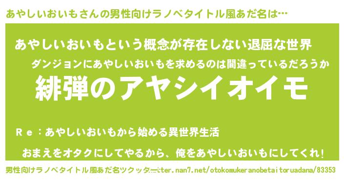 | 意味不明あだ名 | 『永久保存あやしいおいも』 |