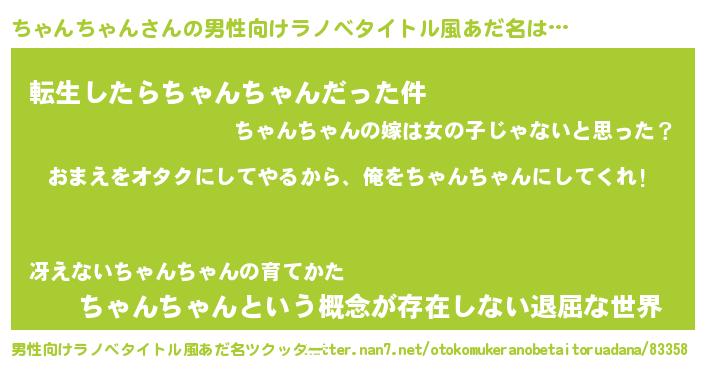 | 胡散臭い通販商品みたいなあだ名 | 『100人中100人が認めたイリジウム磁石…その名も「ちゃんちゃん」』 |