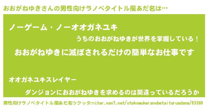 | 女子向けラノベタイトル風あだ名 | 『横柄おおがねゆきと宰相陛下』 |