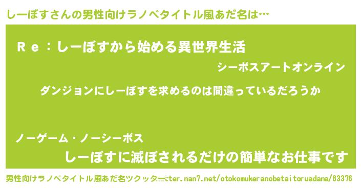 | 意味不明あだ名 | 『とにかく怪しいしーぼす』 |