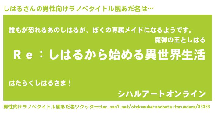 | 女子向けラノベタイトル風あだ名 | 『しはるストレイドッグス』 |