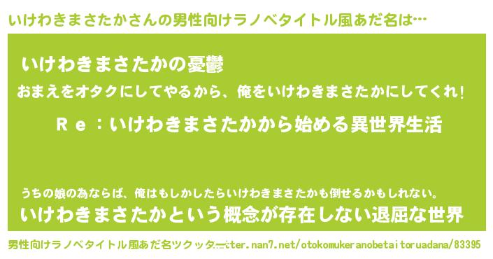 | 女子向けラノベタイトル風あだ名 | 『闇のいけわきまさたか』 |