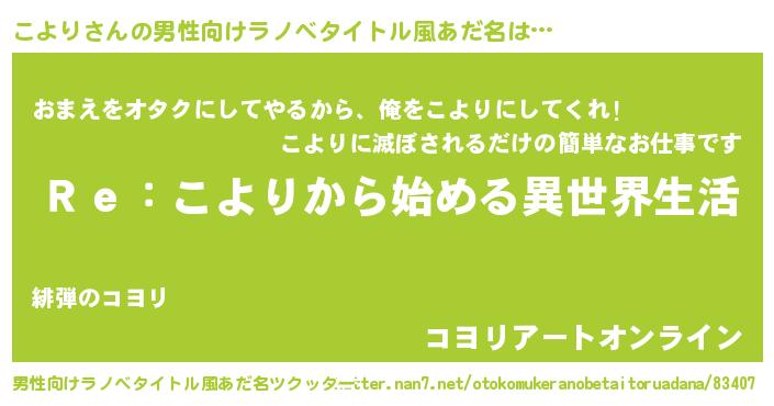 こよりさんの男性向けラノベタイトル風あだ名をツクッター!