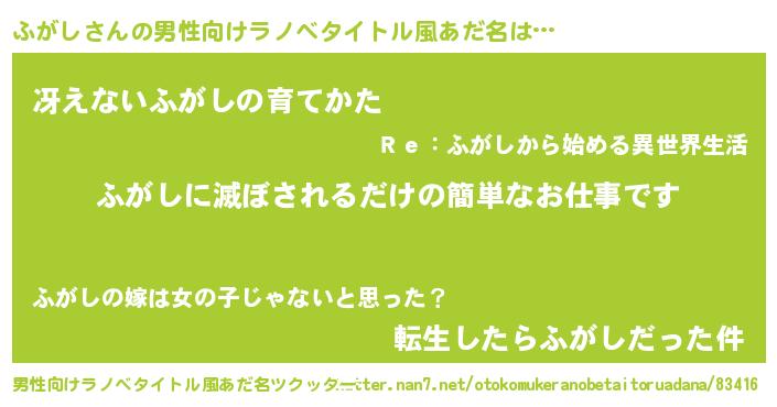 | 女子向けラノベタイトル風あだ名 | 『横柄ふがしと宰相陛下』『闇のふがし』 |