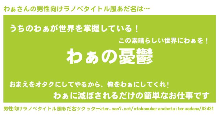 | 胡散臭い通販商品みたいなあだ名 | 『モテモテ間違いなし霊験あらたかなお札…その名も「わぁ」』 |