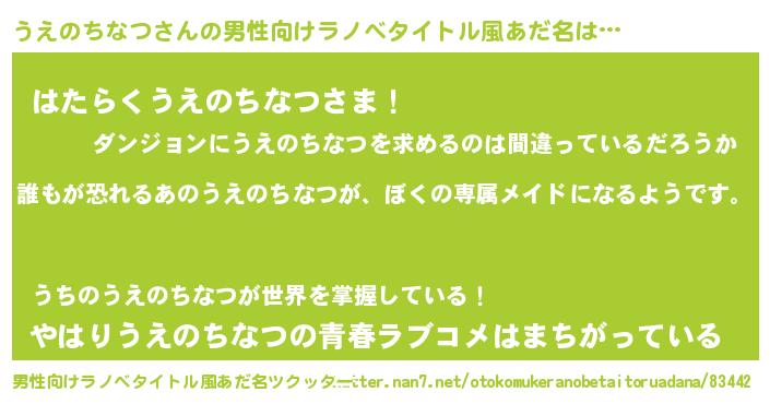 | 胡散臭い通販商品みたいなあだ名 | 『前代未聞の健康食品…その名も「うえのちなつ」』 |