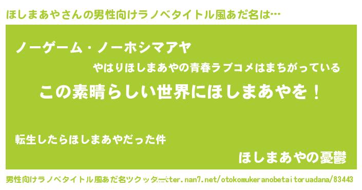 | 女子向けラノベタイトル風あだ名 | 『悪役ほしまあやに転生したようですが、知った事ではありません』 |