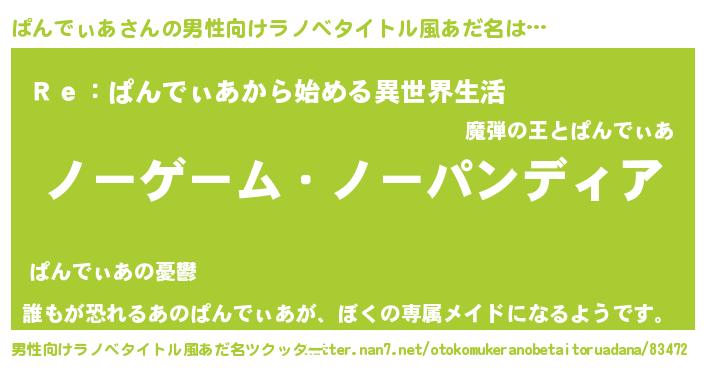 | ヘコむあだ名 | 『ぱんでぃあ(苦笑)』『ぱんもー』 |