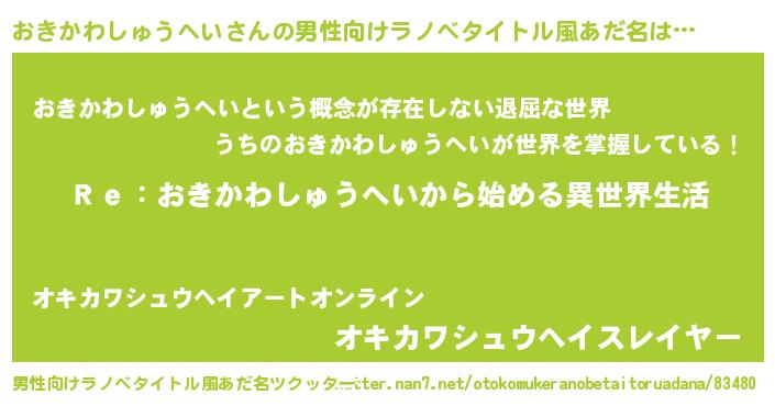 | 女子向けラノベタイトル風あだ名 | 『闇のおきかわしゅうへい』 |