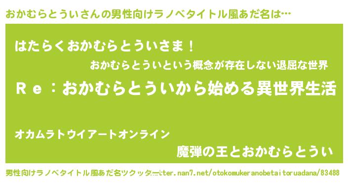| 意味不明あだ名 | 『自称おかむらとうい』 |