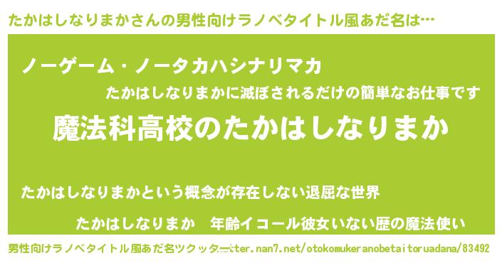 | 女子向けラノベタイトル風あだ名 | 『たかはしなりまかアンティーク』 |