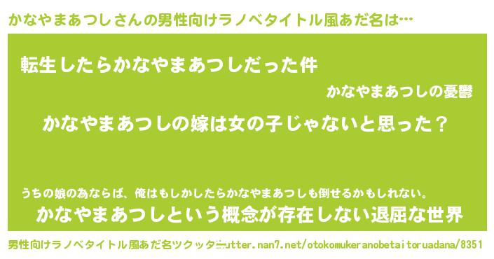 | 女子向けラノベタイトル風あだ名 | 『かなやまあつし様がみてる』 |