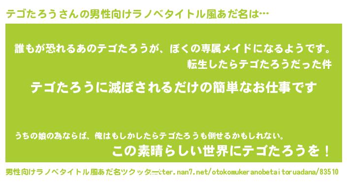 | 伝説のあだ名 | 『古文書に記された勇者テゴたろう』 |